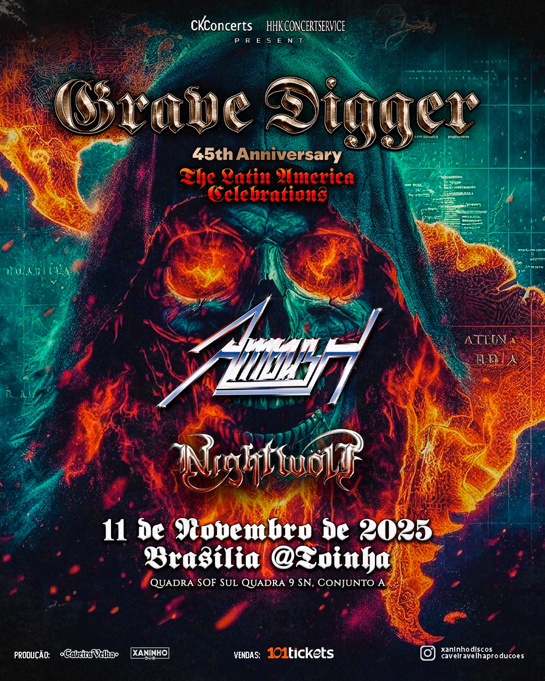 Foi anunciado hoje que o veterano grupo germânico de heavy metal GRAVE DIGGER irá se apresentar em Brasília/DF durante a sua tour latino-americana em comemoração aos 45 anos de carreira. A tour foi batizada de “Latin America Celebrations”.